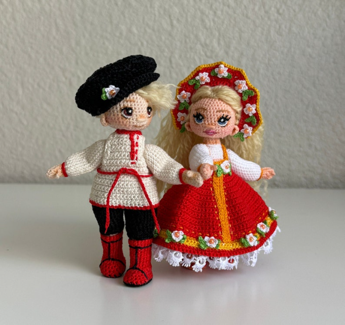 Part two brings the magic: crochet a sundress, shoes, and kokoshnik (a traditional headdress) for the girl, and pants, shirt, boots, and a cap for the boy. Whether they’re heading to a folklore festival or just your living room shelf, these outfits are pure handmade charm.