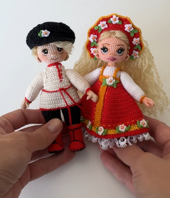 Say hello to your next crochet obsession! This 2-in-1 PDF pattern set lets you create a fully articulated doll plus dress it up in traditional Russian folk costumes. That’s right—you’re not just crocheting dolls, you’re creating little characters with big personalities. 😍