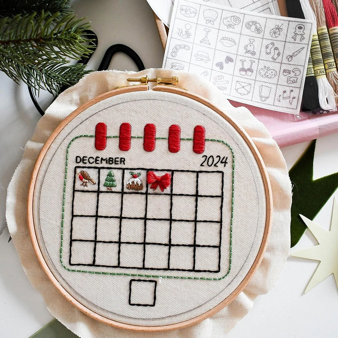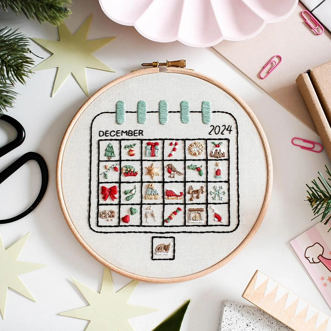 With this 2025 Advent Calendar Embroidery Kit, you’ll stitch one little pattern each day from the 1st to the 24th.