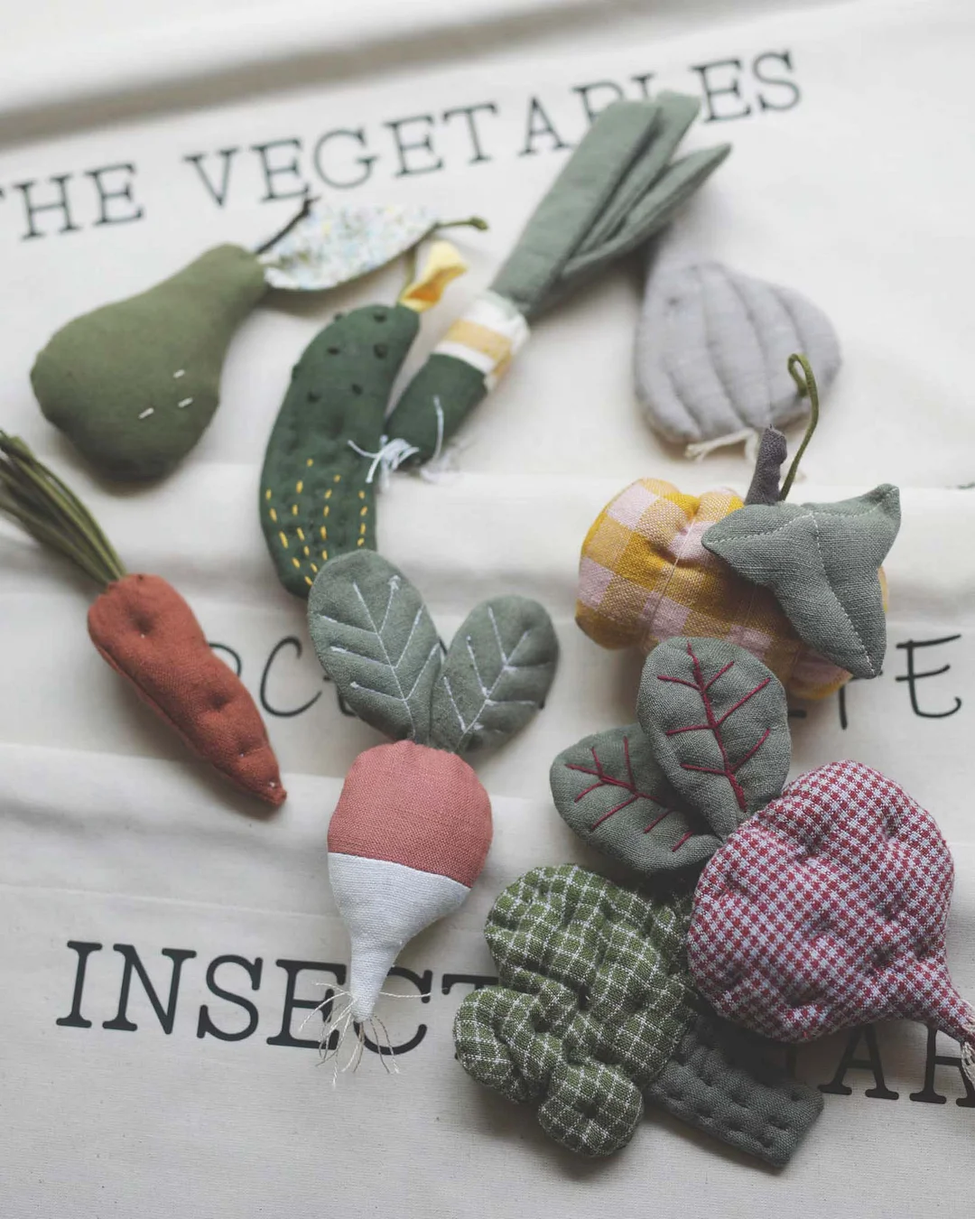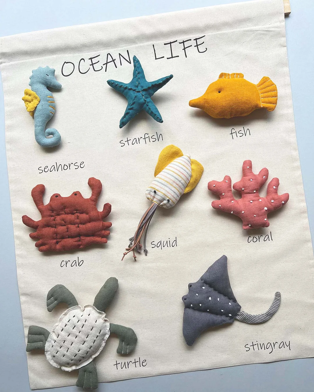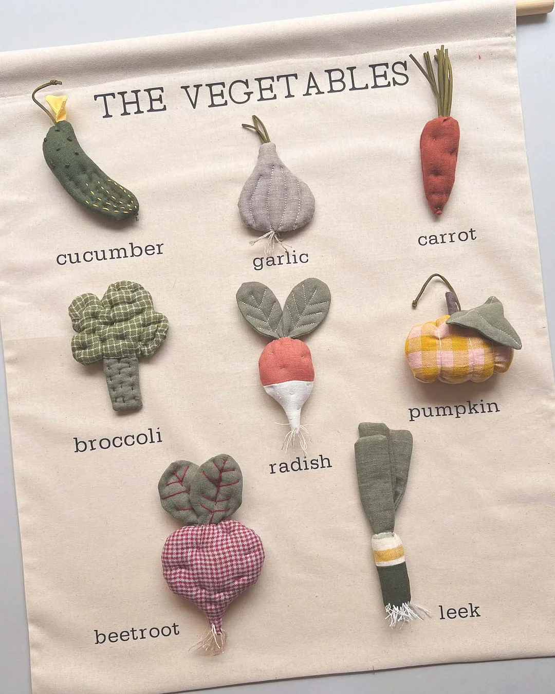 This downloadable PDF pattern includes 32 adorable fabric ornaments inspired by 🐞insects, 🥦vegetables, and 🐠ocean creatures – all ready to be brought to life by your magical needle!