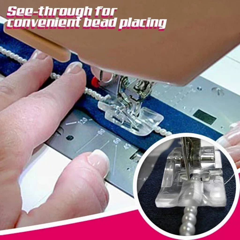 TRANSPARENT SEWING ACCESSORY - This presser foot is see-through for convenient bead placing. You will be able to see the tracing guide of your design pattern on which you need to place the beads.