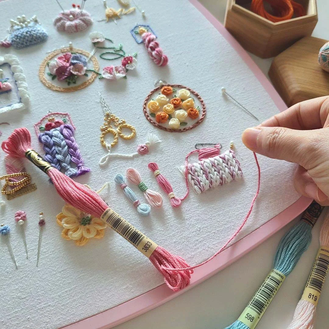 Looking to make your crafting time extra fun? Meet the Cute Objects Embroidery Kit! This kit is packed with 16 mini designs that are cute as can be – think flowers🌼, scissors✂️, little bags👜, and so much more! Each tiny object is bursting with charm, adding just the right dose of joy to your stitching sessions.