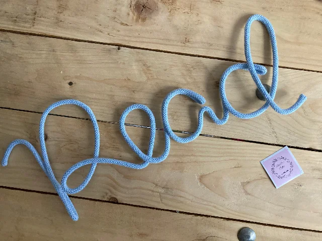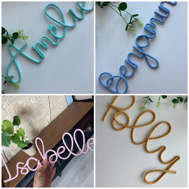 Knitted wire words, names , quotes are great addition to any room . Great nursery and kids room decor , they look great on a wall or rested on a shelf . Perfect for baby shower , new baby gift , birthday , house warming party and many more these wire words can be made in lots of different colours . they are perfect decor piece for bedroom, nursery, hall or kids rooms .
