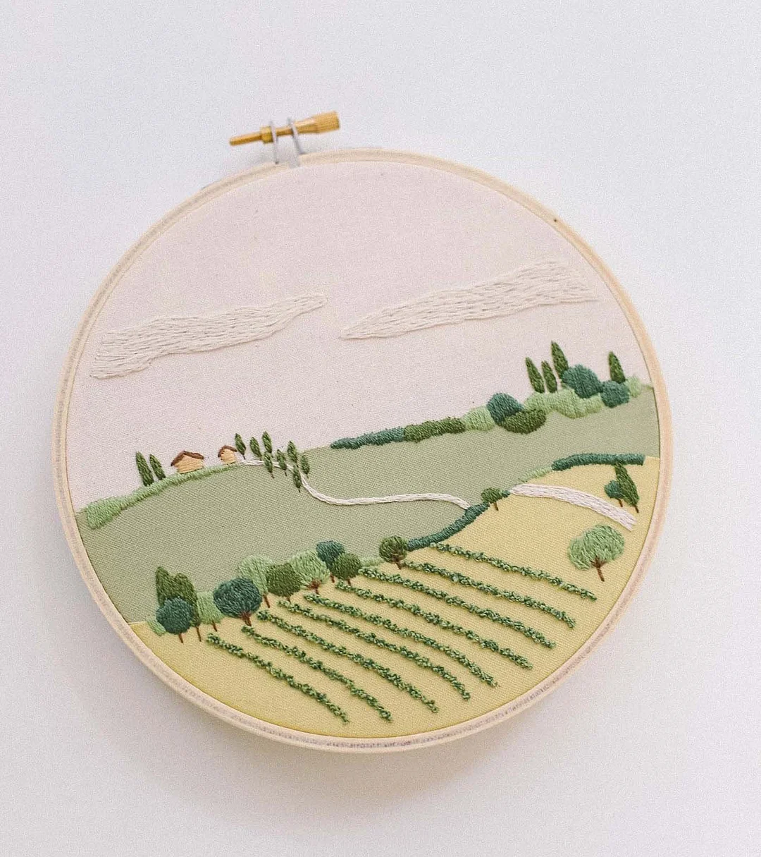 It's not just the grass that shines! A few fluffy white clouds float across the design, adding life and movement. Embroidery becomes not just creation, but a mini escape to the peaceful outdoors! ☁️