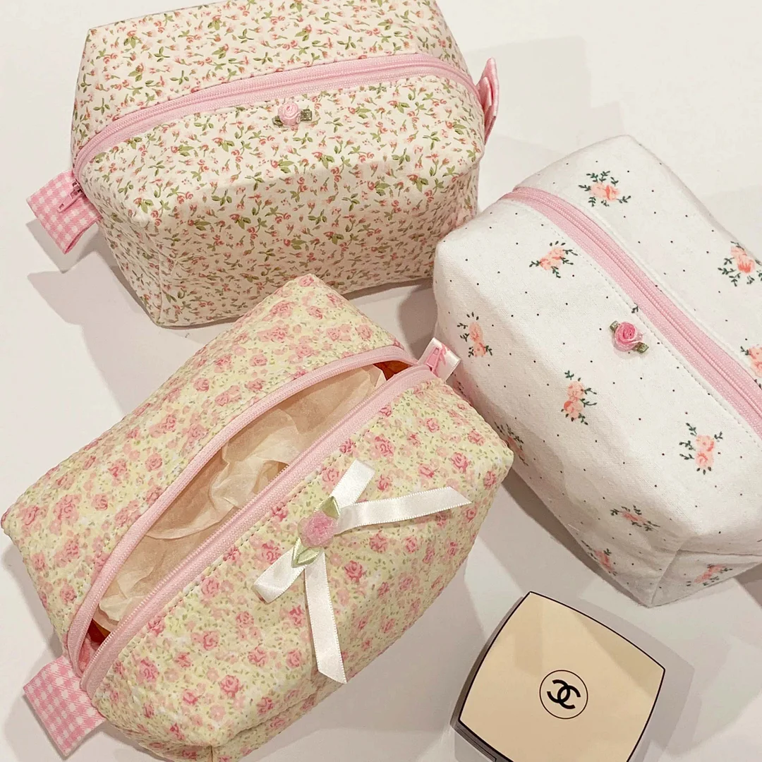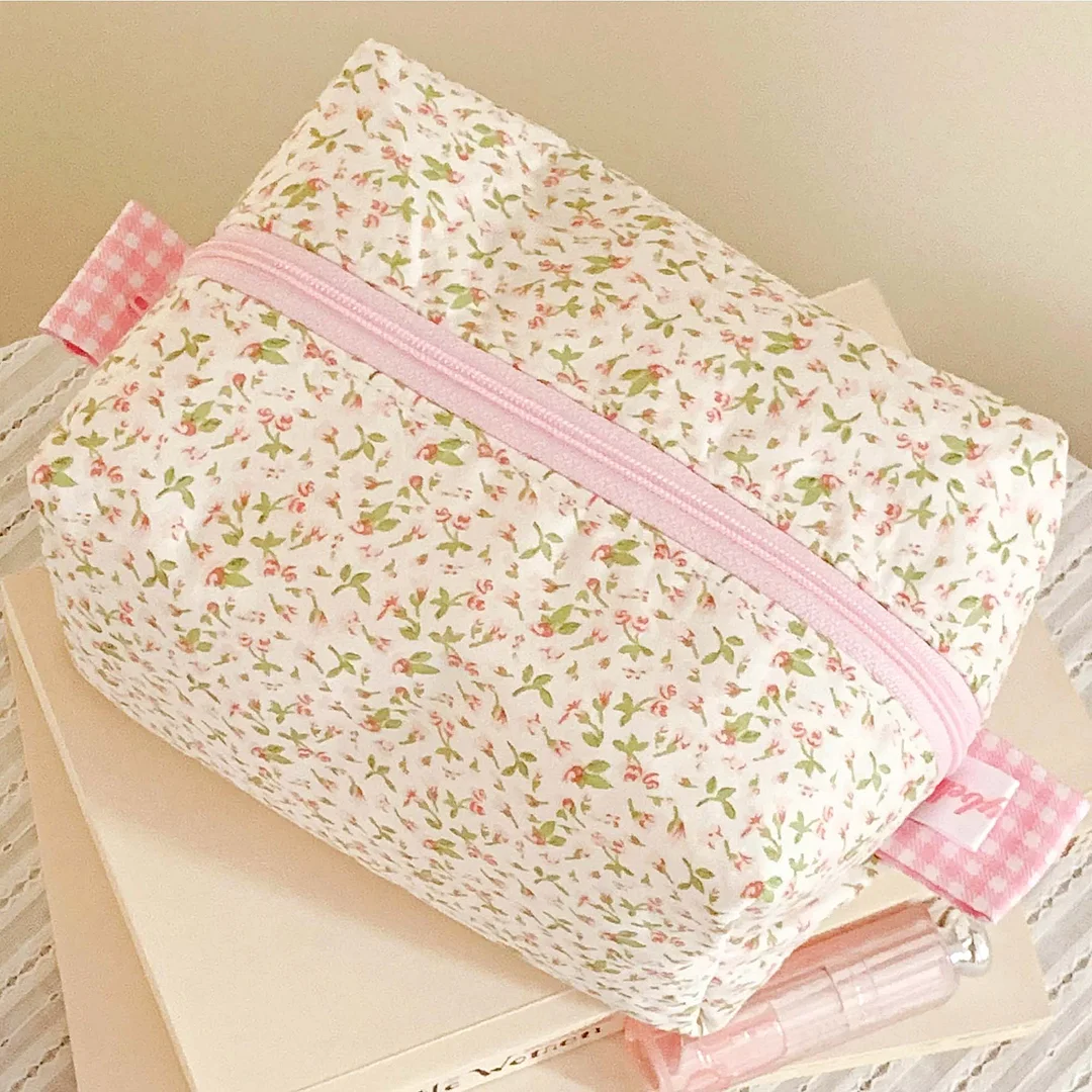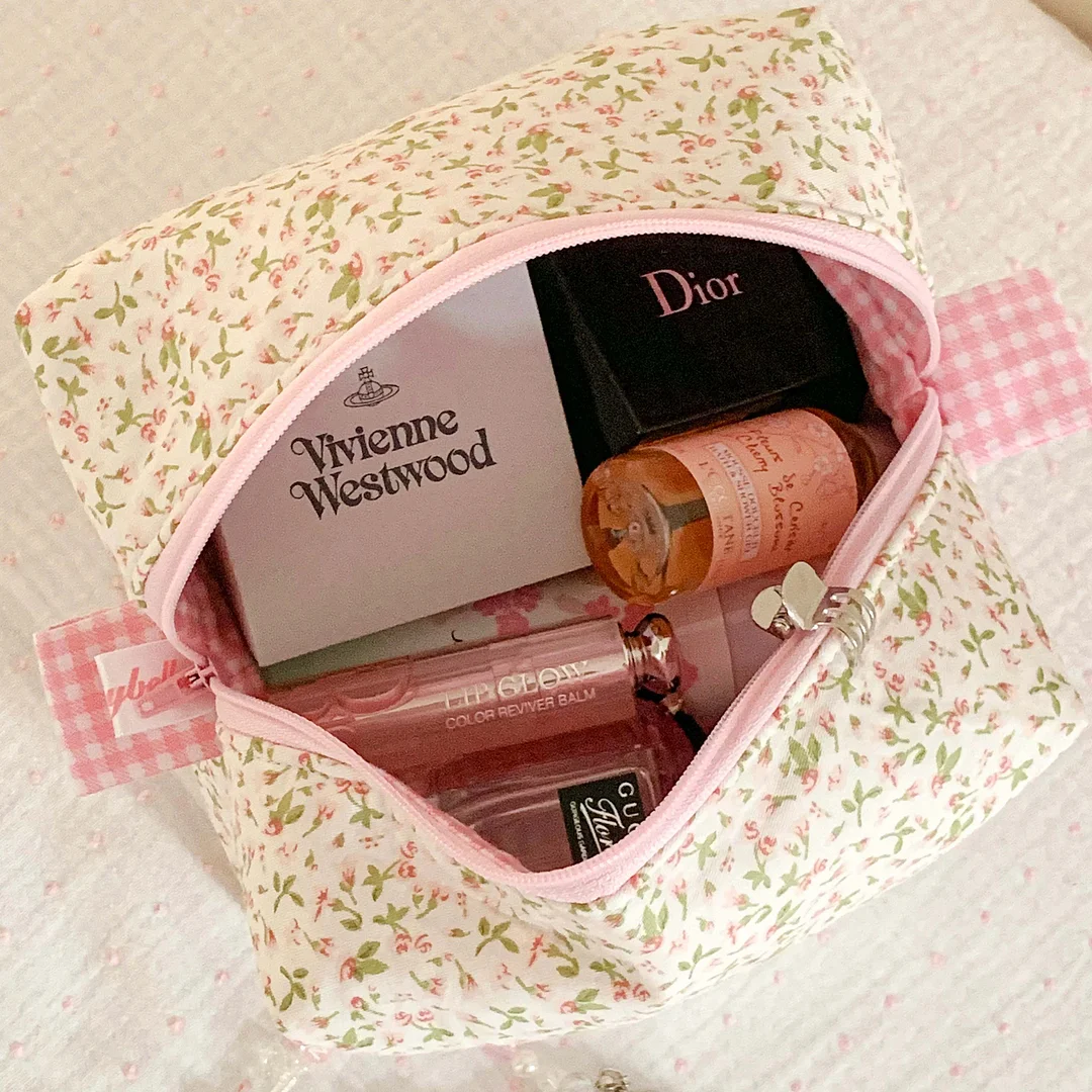 A simple, adorable, and super practical makeup bag template that lets you sew your own daily dose of happiness! 🌸🧵💄💗
