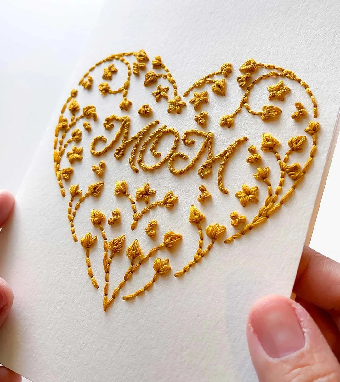 - Paper Embroidery Craft: Each stitch is a testament to your love—this card is practically a work of art 🌟. The hand-stitched details add a special touch of care 💖.